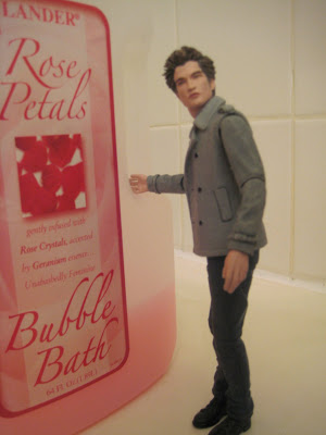 …or at least he takes a bath. Lauren is back with her adventures with pocket Edward. Edward last showed us his culinary talents. Now it’s time for a bath.