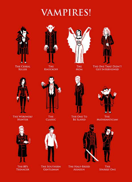It’s pretty common knowledge that Lori (Alphie) is not just a fan of Twilight, but of all things Vampires. So when Twilightish posted this wonderful chart covering all the most popular vampires in movies and on TV, we simply had to share! It was created by Ben Douglas and he challenges you to name all 12 Vamps. Notably missing are Damon and Stefan from Vampire Diaries, but they pretty much have the rest of the vamps covered! Leave us a post if you can name them all! Oh… and Happy Halloween!