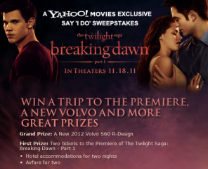 Say “I do” with the Yahoo! Movies: The Twilight Saga: Breaking Dawn – Part 1 sweepstakes.