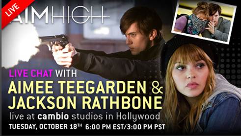 AIM HIGH, which debuts on Cambio and Facebook today, is the story of a young man leading a double life — juggling his studies by day and serving as a government agent by night. This series chronicles the life of Nick Green (Jackson Rathbone), a junior who’s just starting a new school year as one of the country’s 64 highly trained teenage operatives. When he’s not handling international spies, Nick is dreaming of Amanda Miles (Aimee Teegarden), the most popular girl in school, who’s cool, intelligent and very alluring. AIM HIGH is the first “social series” which allows Cambio and Facebook users to become part of the show through seamlessly integrating their Facebook profile information – including photos, text and friends – by simply opting into the application on the show’s Facebook page!