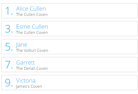 The Tongal website has announced (see chart below in no particular order)the top ten Twilight characters selected in the fan voting to be featured in the new female fan written short films.