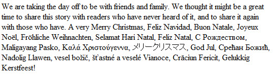 On behalf of the entire staff of the Twilight Lexicon, we wish all our readers Merry Christmas and Happy Holidays!