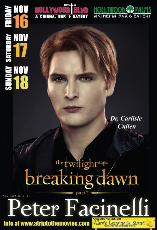 Peter Facinelli, Dr. Cullen, will be hosting opening weekend of Breaking Dawn Part 2 at Hollywood Palms and Hollywood Blvd this November.