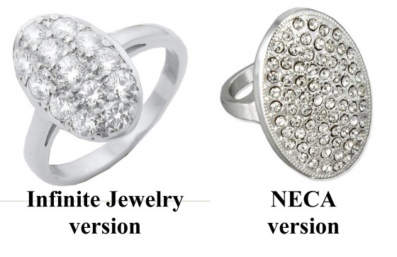 Here is an image from a side-by-side comparison we did of the infinite jewelry vs. the mass produced products back in 2010.