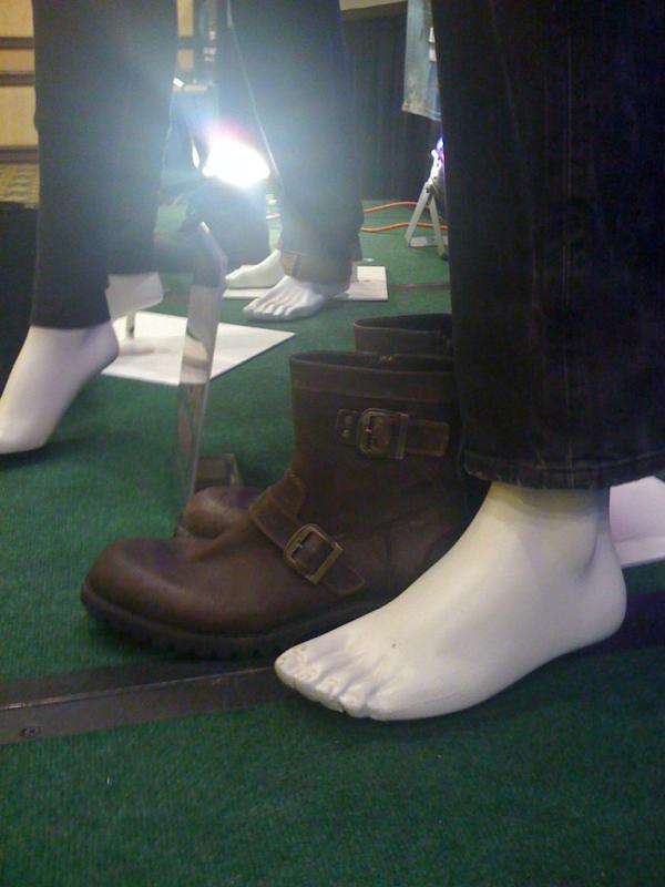 A little over a year ago Laura attended a one of the Official Twilight Conventions run by Creation Entertainment (I think it was San Fransisco but I’m not 100% sure.) They had just put up on display a bunch of costumes that had arrived fresh from the set of Breaking Dawn. At the time, we didn’t know if they were from part 1 or part 2. All we knew was that they were definitely used on set because the clothes (especially the shoes) had dirt all over them. So in other words they weren’t just photo-shoot or standby costumes in case something ripped, they had actually seen use and wear and tear. Well based on what Kristen Stewart and Robert Pattinson are wearing in the EW photo that is teasing tomorrow’s cover shot, they are the same clothes! Here they are up close, and you can clearly see the dirt on Rob’s shoes in the photos: