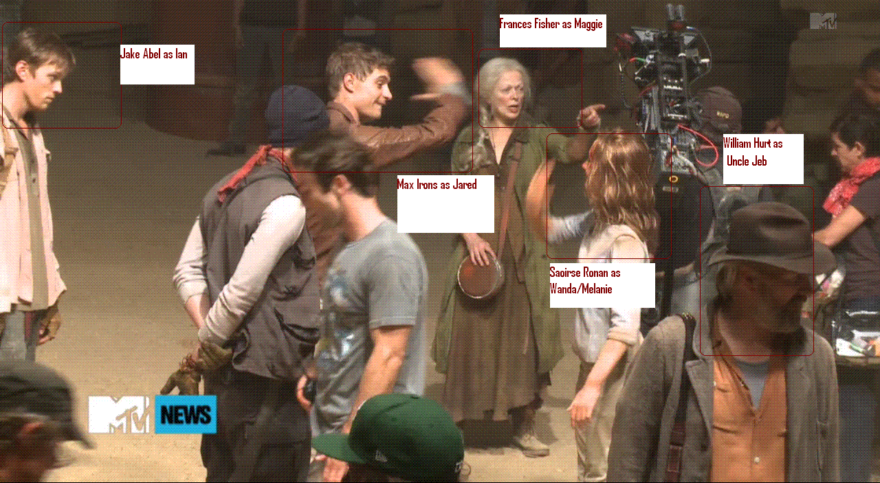 The crew over at The Host Movie fans took a series of screen caps of the footage that went by really quickly on MTV. We took one of the screen caps and labeled who is who.