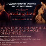 Say “I do” with the Yahoo! Movies: The Twilight Saga: Breaking Dawn – Part 1 sweepstakes. To celebrate the launch of the new Twilight film we’re offering one lucky fan a pair of tickets to the premiere at LA Live (including air fare and accommodation for two nights), plus a grand prize of a Volvo … [Read More...]