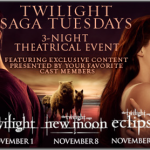 We just received the following press release from Summit Entertainment: NCM Fathom and Summit Entertainment celebrate the upcoming release of the most anticipated movie event of the year, The Twilight Saga: Breaking Dawn - Part I, by bringing back the first three Twilight Saga films for special … [Read More...]