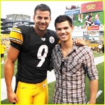 Taylor Lautner is still filming Abduction in the Pittsburgh area. He has some downtime on Sunday where he took in a Pittsburgh Steelers game. According to Just Jared: "Taylor Lautner snaps a pic with Pittsburgh Steeler Dan Sepulveda just before their game against the Detroit Lions held at Heinz … [Read More...]