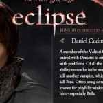 The official Twilight Saga movie website has updated the Eclipse section with various photos. The photos are scattered throughout the site in various montages, but they are also most easily seen in the cast section. Notably missing is a shot of Booboo Stewart, Gil Brimingham, Billy Burke, and … [Read More...]