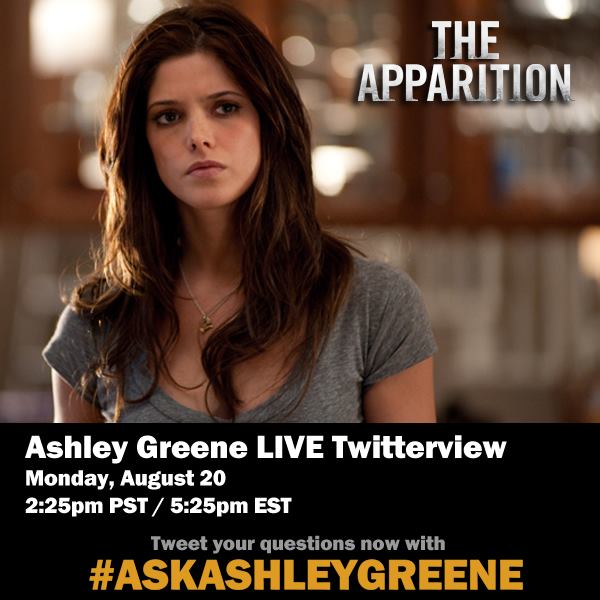 As part of the PR for her new movie Apparition, Ashley Greene is doing Twitter interviews today. Here are the details.