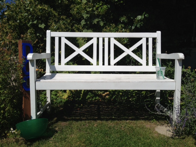 Today’s item is an Austenland looking garden bench. Which going on the clues would seem to be near a Starbucks.
