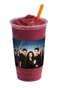 Jamba Juice has taken on Breakign Dawn Part 2 by offering the limited flavor Berry Bitten. I had a chance to try the flavor while out in LA last weekend and it was delicious! The photo was taken by Kimmie of Page to Premiere. You also get a snap wrist bracelet with your drink that features different vampire covens.